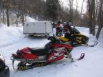 The trails were groomed throughout the day.We found a pretty big clearing and stopped to talk and take some pictures.Some young girl shows up and asks us to pull her little brother out who was off the trail.We had numbers and how bad could it be? Disasterous Bad.This kid rode his GSX550 off the trail and into a deep ditch up against a stump. His sled was up to the windshield in snow.It took 10 minute of hell to dig, lift, clear a path, pull like crazy and get this kids sled out.The mom thanked us and we were off.