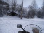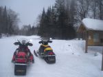#2 wanted to go 8 miles up one of those up and back dead end trails that go within inches of the province of Quebec. BTW they don't groom those. We went from perfectly groomed Pittsburg trails to back country bumpy as hell trails. I lead the way at a heated pace. I stopped at the Wolf Den (some cottage in the middle of nowhere) and asked the Pez what he wanted to do. He wanted to truck on... for at least 5 more miles. Why not?  We got to the end and had that feeling we were not supposed to be there. It was actually the corners of NH, ME & QC.