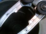Almost ready to reinstall. Then will come tensioning and alignment. I added a quart of oil to the gas tank - which to answer your question requires no special fuel. Standard pump grade 87 will be used. One of the reasons Lee, the Polaris legend who has rebuilt one or two of these motors, guessed that the sled was run without the foam element intalled on the airbox and water injestion washed the front of the pistons which would result in the scoring seen right where the intake is exposed. I had a hard time believing that until I remember #3 handed me a box separate from the sled and the foam element was in it. Hmmmm. A learning moment perhaps.