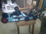 Next mounted carbs and air box. Installed ignition switch and choke in dashboard. Routed throttle and vent lines up to handle bars. Installed driven clutch and belt. Installed exhaust system.