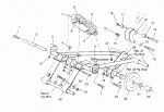 I think like the newer clutch model that they put on, they also put the newest (at the time) suspension in. This skid is basically the same skid that's in my XC, essentially. In fact, I think it's called XC-101 (the newest susp model in the manual is XC-100). Which leads me to a question for #3. When I did inventory and ordered all the little parts I needed I ordered to new stop blocks, these are the black plastic block that limit motion of the lower rear arm having to do with how much transfer is desired. well the guy told me there are 4 in the schematic, but I only have two (and now I can't remember if they were in front or in back. Use the photo below for reference, or take a peek at your XC and you'll see what I'm talking about.