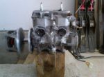 Fast forward - the clutch side crank seal makes a wonderful bubble machine. So out came the engine. Many hours of degreaser and toothbrush and it looks pretty good and is ready for disassembly. Onto the front suspension.
