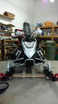 Just the basics, Yamaha FX chassis, 1049cc 3-cylinder Genesis 130 Fuel Injected 4-stroke mill putting out appx 135HP. Double wish bone up front with remote reservoir GYT-R clicker shocks, and a Dual-Shock CK144 rear skid with piggy back compression adjustable clicker rear shock and Camoplast Ripsaw 144 x 1.25 rubber. There have been some mods done all aimed to improve the two main issues with this sled, namely, the stock skis are replaced with Curve XS to reduce darting and the MTX rear heat exchanger is installed to prevent over heating in low snow and reduce ice build up in the tunnel under certain conditions.