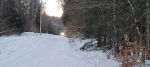 Heading back, I'm still on phenomenal trails but I suddenly come upon a ski area? Skiway?  Never heard or have seen it but I'm right at the base of the trails looking over at the lodge...another sureal feeling.  At this point I realize I'm definitely losing daylight and want to put down some miles.  I make my way back to the Masocoma trail junction for my loop south back towards Sunapee, Newport and Goshen...the trail never disappoints and once again...its groomed!  I'm all in with no plans to stop 7ntil I see a gorgeous sun setting and saying goodnight...I have to take some pics!  It's dusk and my windshield decides it doesn't like being on the sled.  It tries to fly off but I catch it, slow down and push it back into its proper position.   I then come up to a small lake crossing...the trail map gives me no other options but I'm seeing typical hardened slush ruts.  As I'm headed across closing in on the shoreline, I start to see heated docks, open water and a boat ramp...I'm smacking the throttle and headed for the ramp.  My rear end is spitting slush and I'm like WTF.  On the ramp there is no trail.  I reassess the trail marking on the GPS and see its off to my left.  I head back out, veer to the left and boom...there's the trail head.
